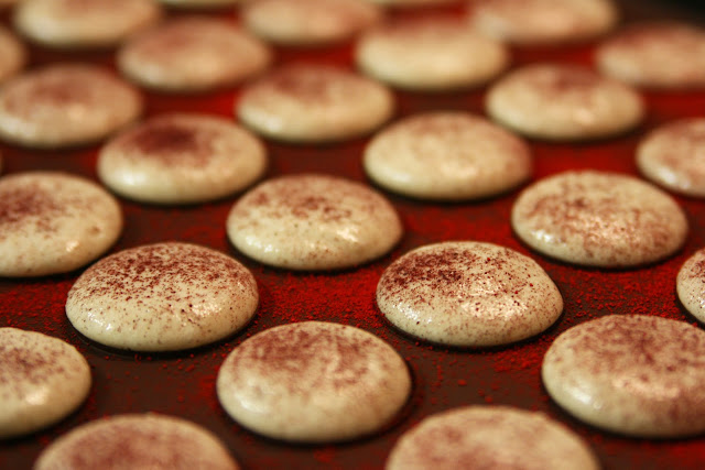 I've been wanting to post a recipe about macarons for quite a long time. This macarons recipe I'm about to share with you it's not new, somehow it got lost among the million of folders in my computer. Today, while checking my blogging 'to do' list I found out that the majority of my cookies and macarons recipes are still unpublished and I thought that maybe you'd like to see how my second batch of macarons came out (let's forget about how my first batch looked cause...well, they weren't very delectable at all).