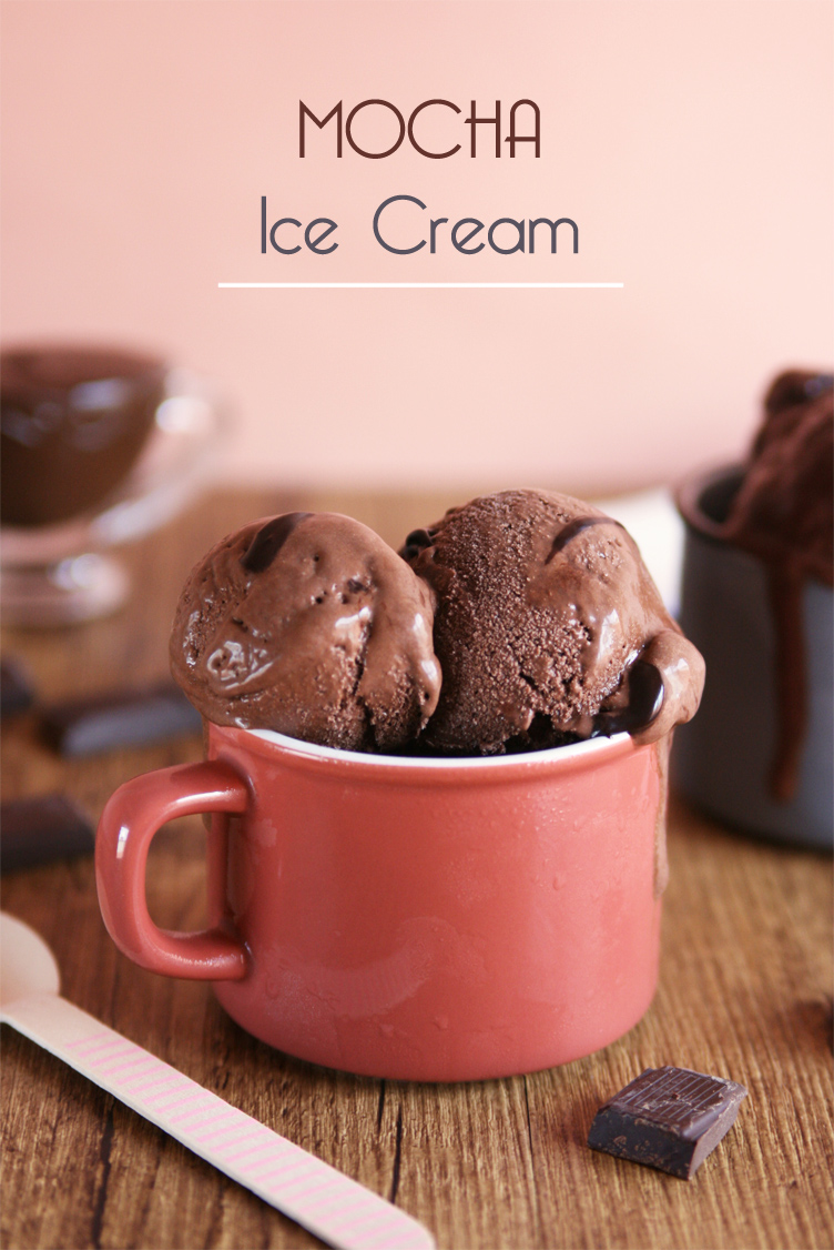 One thing I've learned over the last two weeks is to avoid eating dark chocolate and/or sugar after dinner, it gives me quite a lot of energy and then I can't sleep. Like that night I decided to eat a big bowl of the Mocha Ice Cream I'm sharing with you today. The dark circles in the morning were worth it anyway, cause this ice cream is so deliciously creamy and chocolaty! Any chocolate or coffee lover should try it before summer ends (owell, I'm one of those persons who still eats ice cream during winter). Chocolate and coffee are winning combo, everybody knows that, but if you're still hesitant about it then I encourage you to treat yourself with this ice cream.